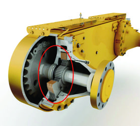 Diseño de rueda motriz elevada = aísla los mandos finales del impacto del tren de rodamiento y de las cargas inducidas por la hoja, lo que brinda mayor vida útil.