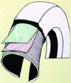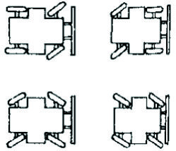 articuladas en un extremo, en el punto diametralmente opuesto al eje de giro se sitúa una leva sobre la que se apoya el otro extremo de cada una de las zapatas.