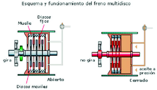Ejemplo de un freno de disco y horquilla, y multidiscos: